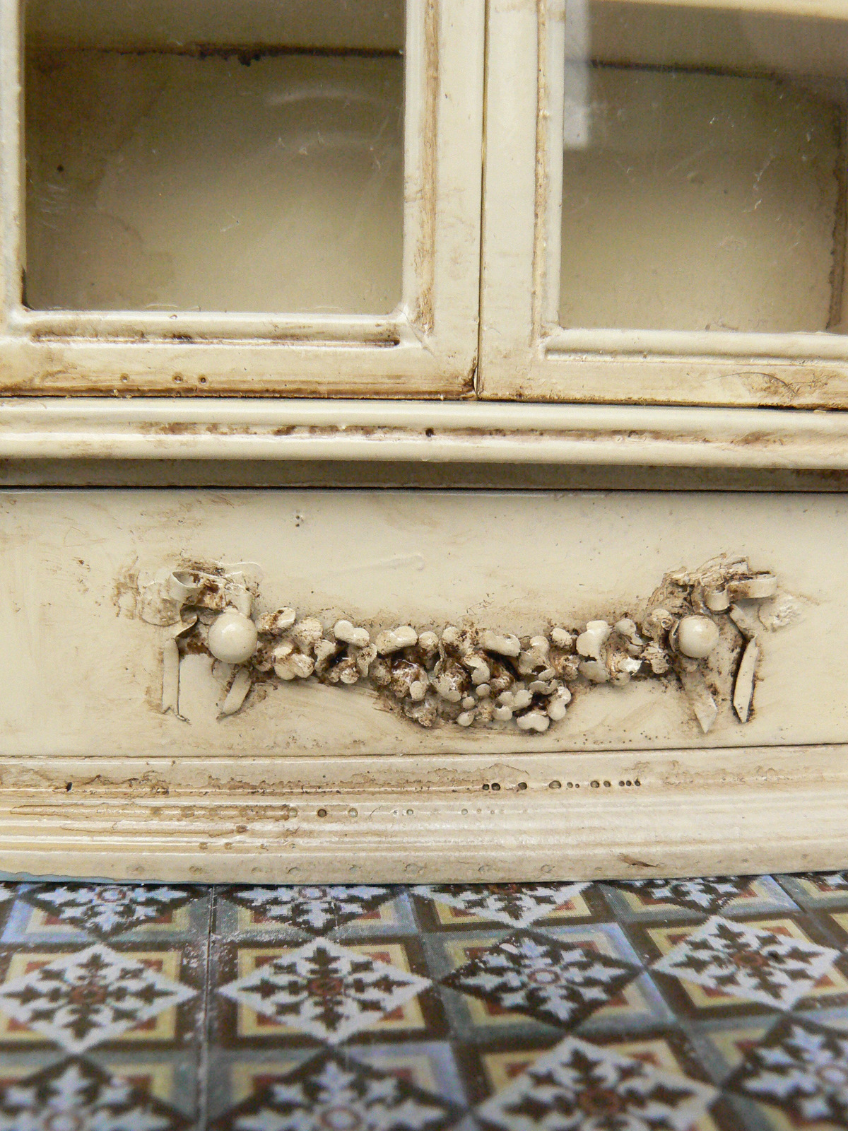 | La vitrina era asi en azul y blanco, muy bonita pero me apetecia darle un poco de suciedad ....un cambio vaya. |